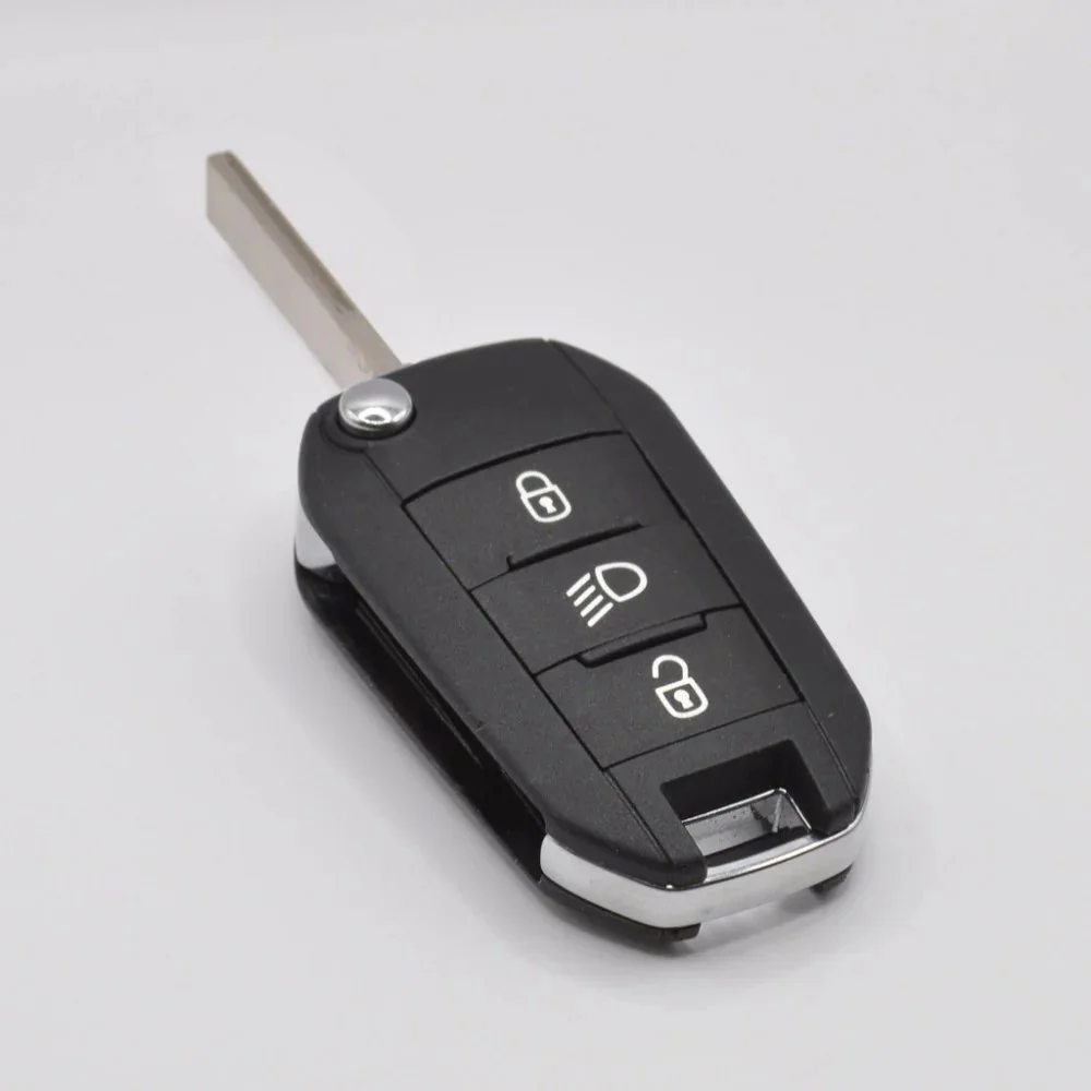 High-quality 3-button flip key remote designed for Peugeot models. Note: Buttons may vary.